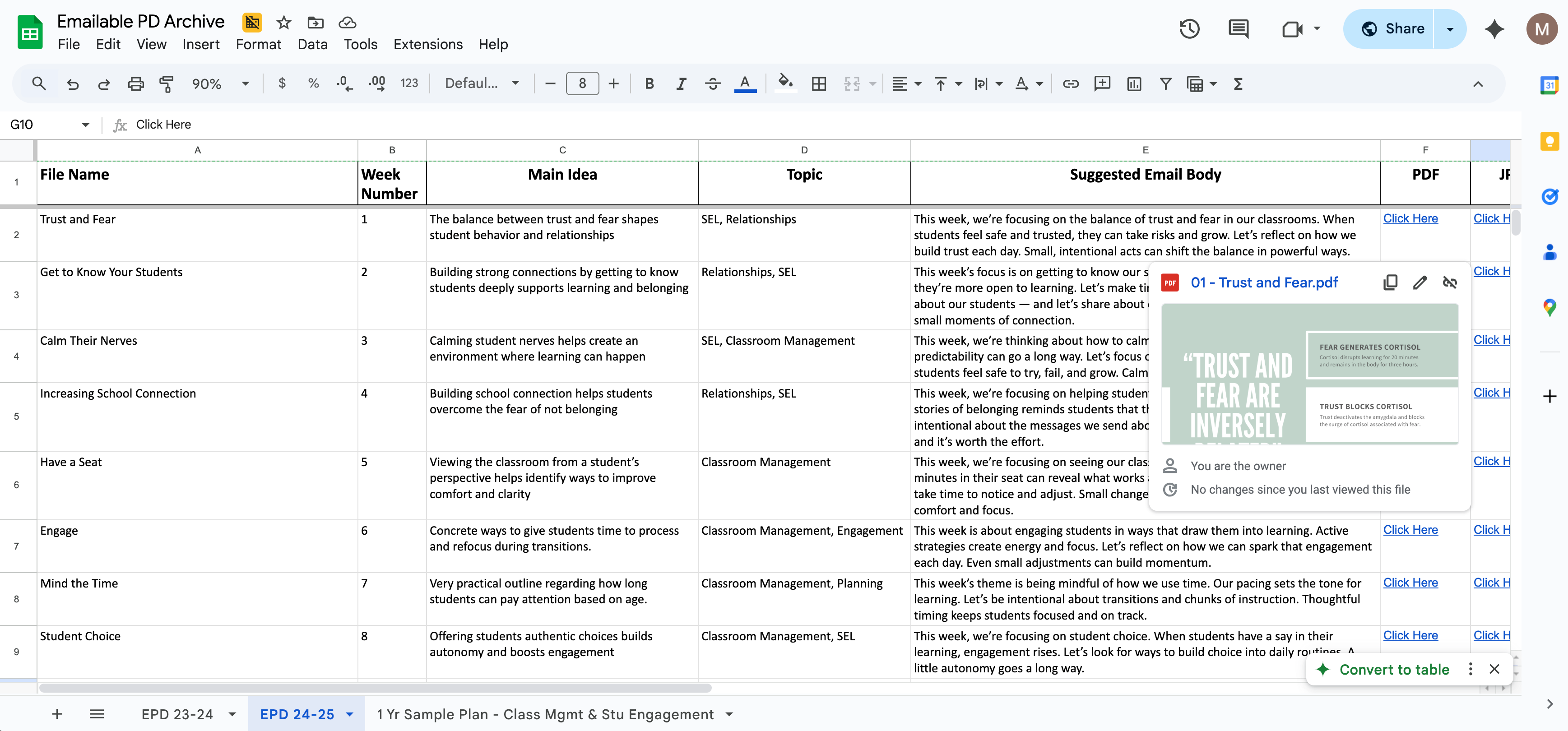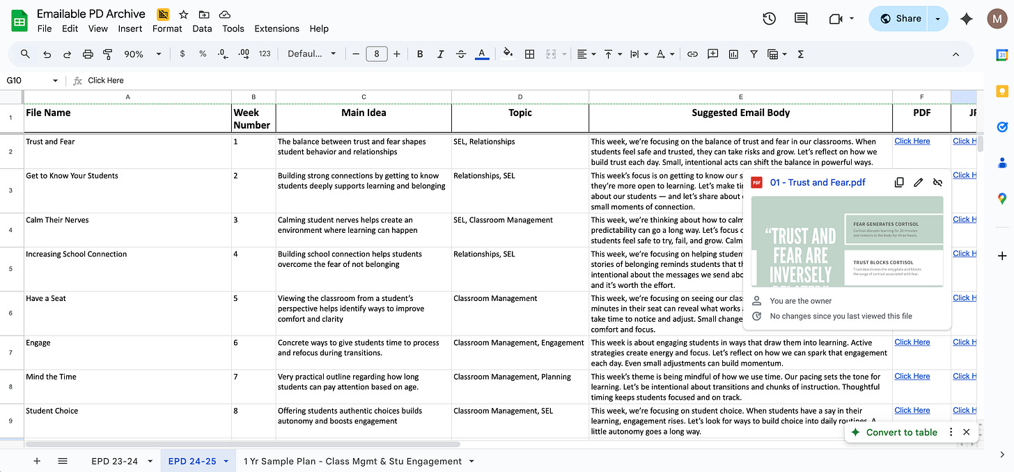 All paid subscribers now have access to a single Google Sheet with all 80+ weeks of our Emailable PD—complete with a brief summary of each week, a link to each file, and a short staff email you can copy, paste, or tweak as you like.