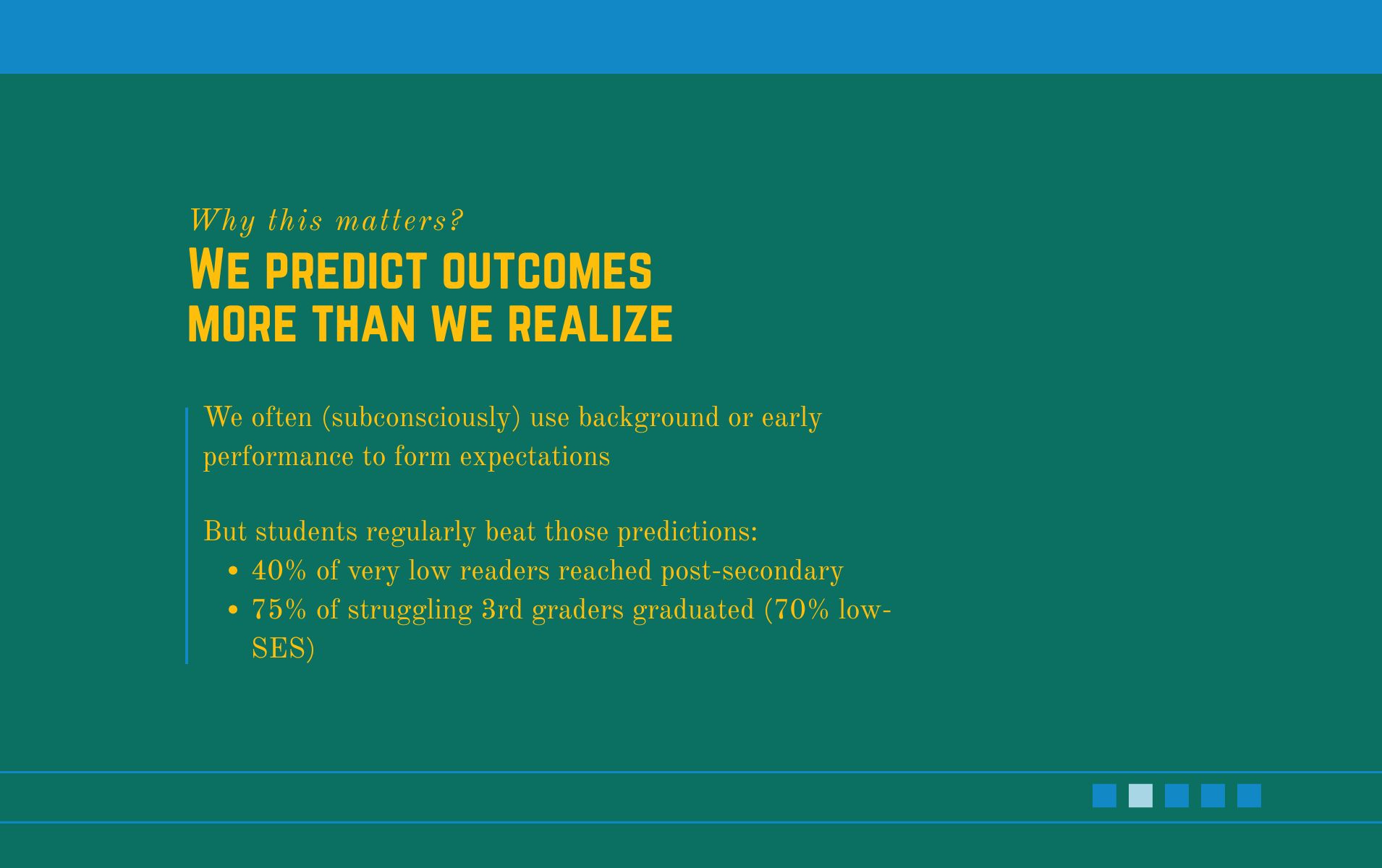 The challenge is not that we form expectations, but that they can become predictions about what students are capable of achieving. When expectations are lowered, students may receive fewer opportunities to engage deeply, take risks, or demonstrate growth.
