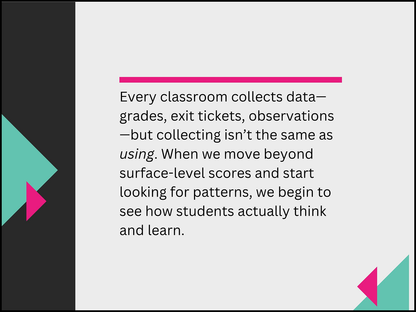 This week, we’re focusing on one of the most powerful habits for improving teaching and learning: using the data you already collect. Grades, exit tickets, and observations tell a story—but only if we take time to listen. When we move beyond numbers and start looking for patterns, we uncover insights about how students think, what they need next, and how our teaching is landing. Data isn’t just for reporting; it’s for reflection, growth, and smarter decisions. Let’s turn information into impact—one intentional look at a time.