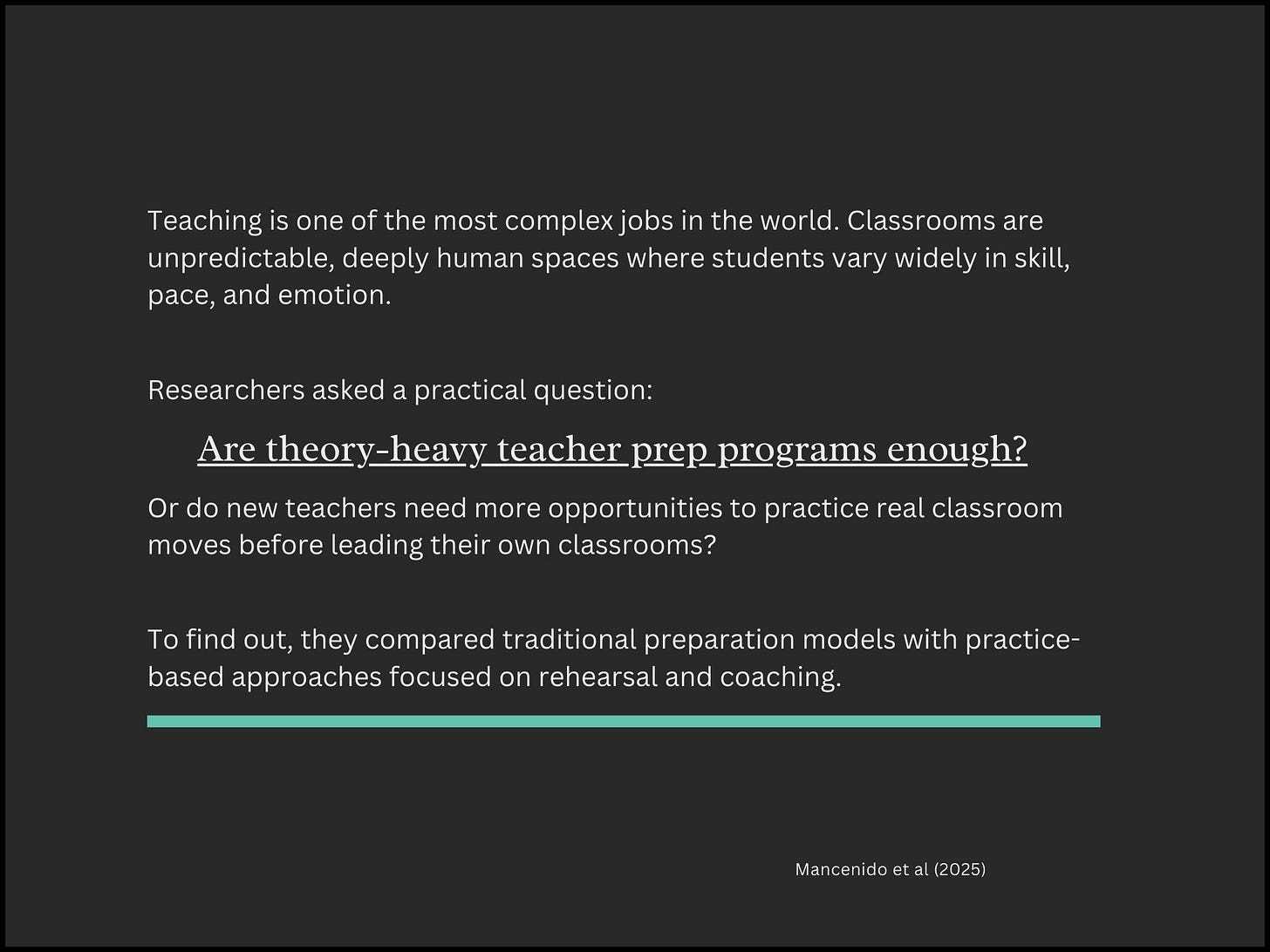 And this week’s Emailable PD marks the penultimate edition in our series of the top ten research studies of 2025. It’s all about the quality of pre-service teacher prep. Turns out the “just give ‘em a boatload of theory” approach doesn’t really work. Who would’ve thought?